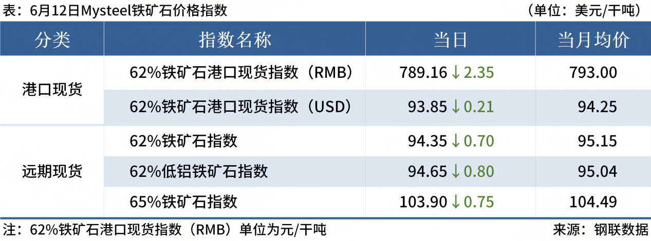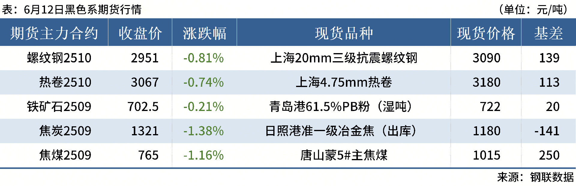 ◎ 6月12日,全國(guó)主港鐵礦石成交85.40萬(wàn)噸,環(huán)比增8.5%;237家主流貿(mào)易商建筑鋼材成交8.92萬(wàn)噸,環(huán)比減14.7%。