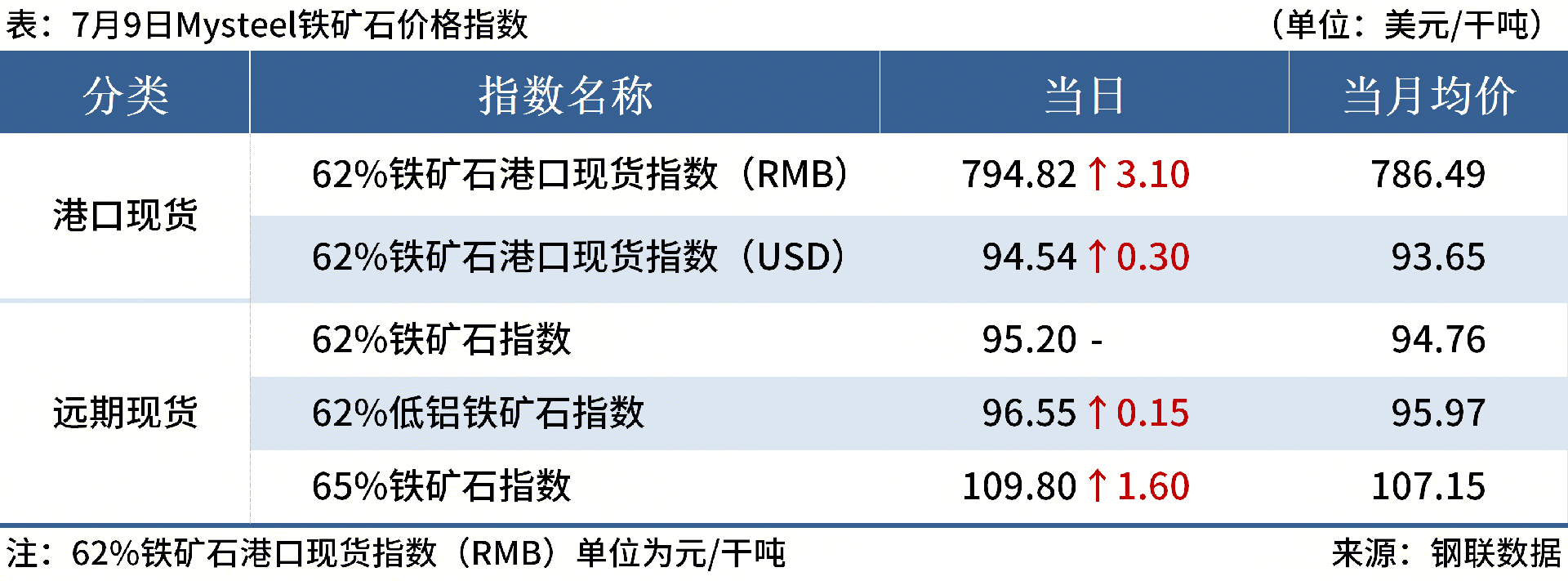 ◎ 7月9日,全國主港鐵礦石成交94.20萬噸,環(huán)比減5.7%;237家主流貿(mào)易商建筑鋼材成交8.85萬噸,環(huán)比減7.5%。