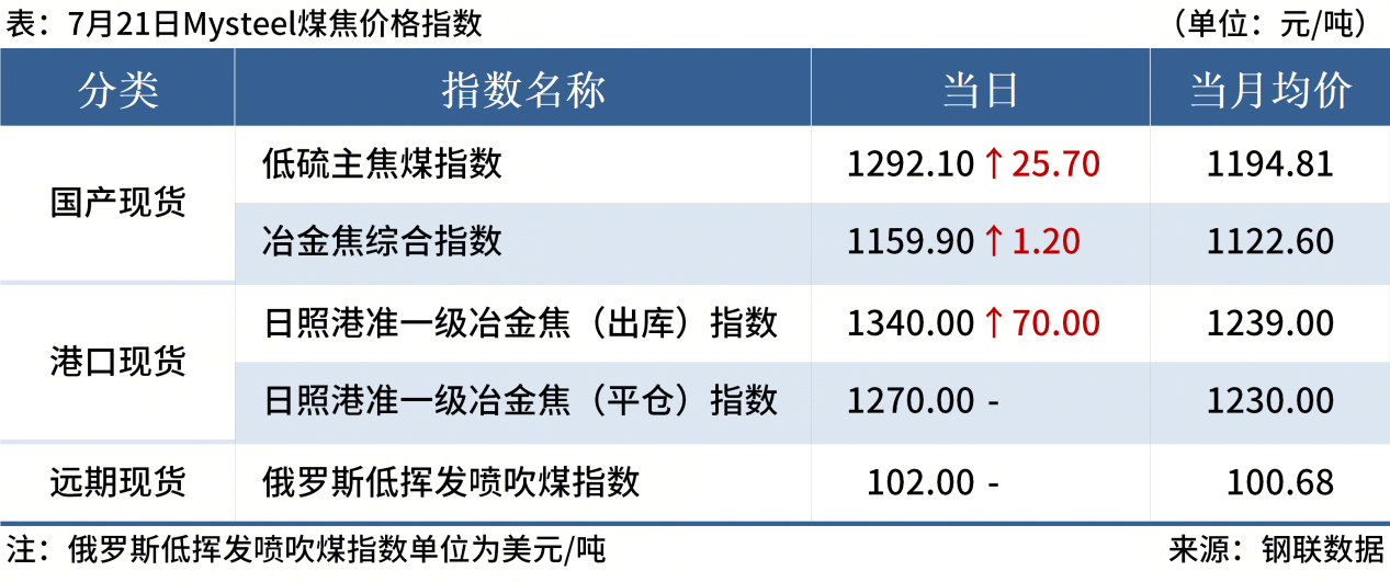 ◎ 7月21日,焦企開啟第二輪提漲,濕熄焦上調(diào)50元/噸、干熄焦上調(diào)55元/噸,自7月22日0時(shí)起執(zhí)行。