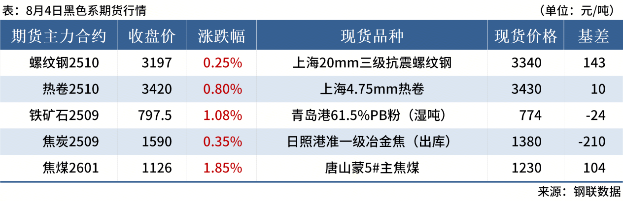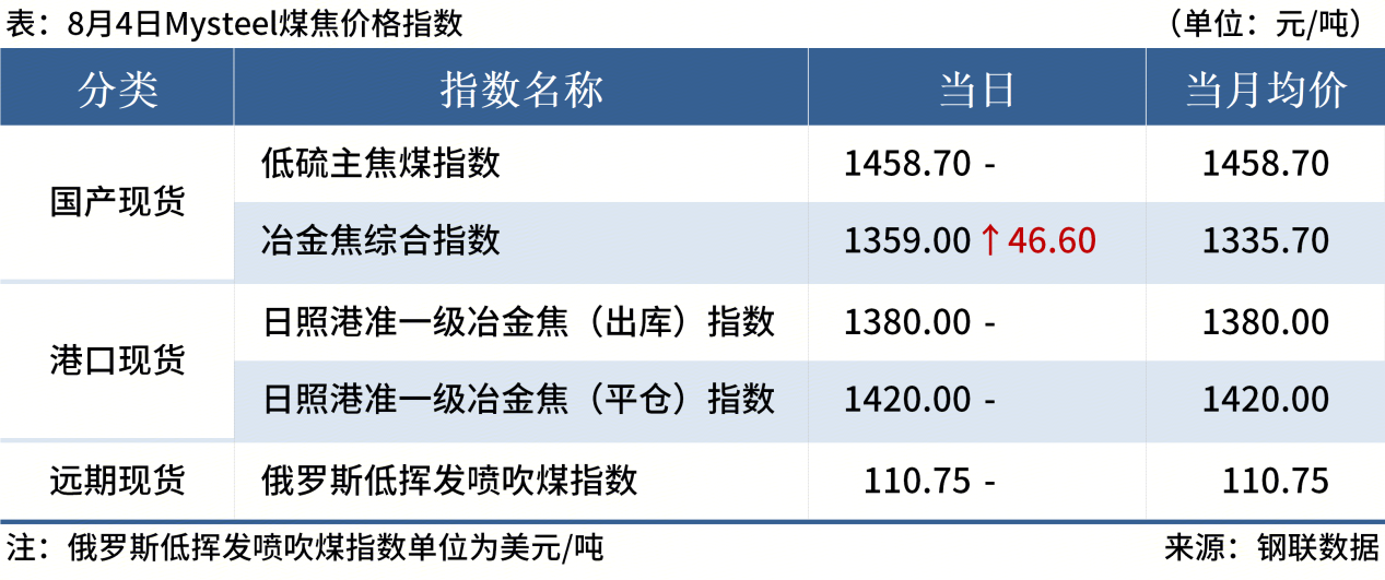 ◎ 焦炭第五輪提漲全面落地。河北、山東等地鋼廠針對(duì)焦炭采購價(jià)格進(jìn)行上調(diào),濕熄漲幅50元/噸,干熄漲幅55元/噸,8月4日0時(shí)起執(zhí)行。