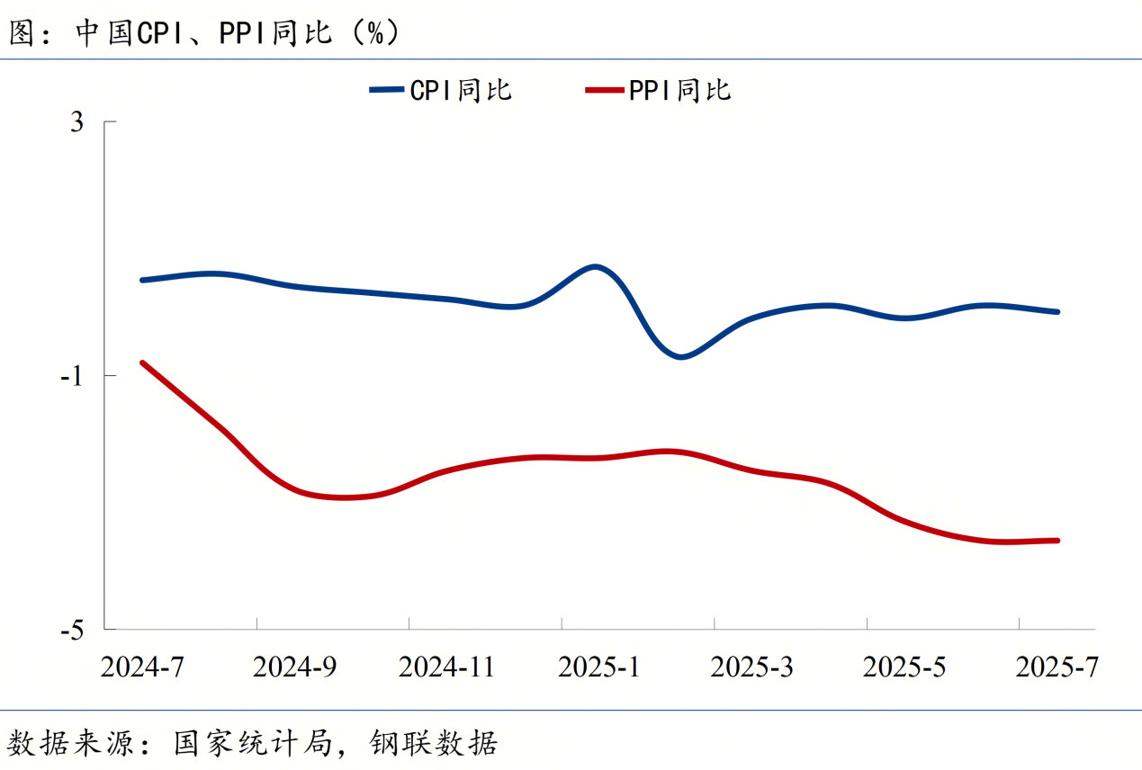 ◎ 國家統(tǒng)計局:7月份,擴內(nèi)需政策效應持續(xù)顯現(xiàn),CPI環(huán)比由上月下降0.1%轉(zhuǎn)為上漲0.4%,同比持平;受季節(jié)性因素疊加國際貿(mào)易環(huán)境不確定性影響,PPI環(huán)比下降0.2%,環(huán)比降幅比上月收窄0.2個百分點,同比下降3.6%。