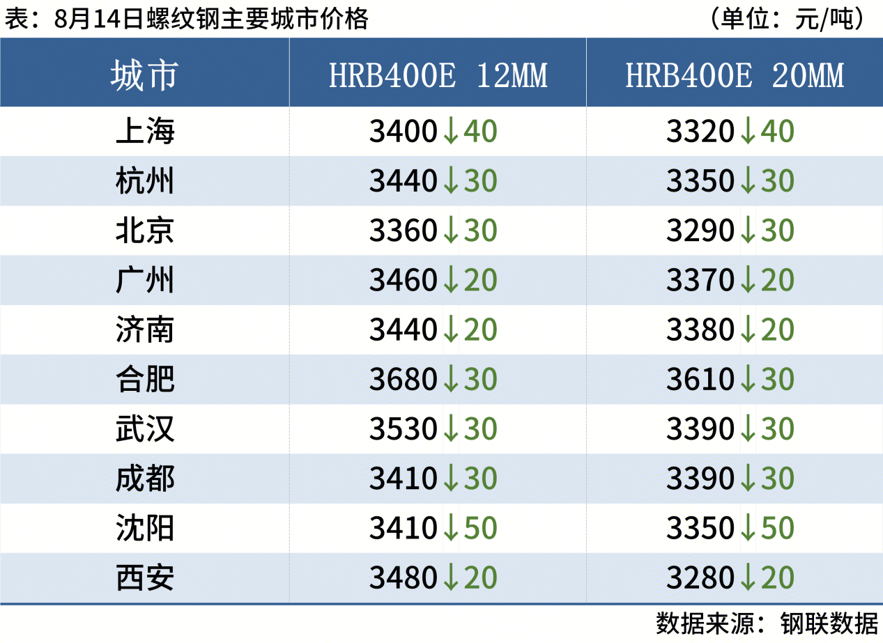 8月14日,國(guó)內(nèi)鋼材震蕩偏弱,唐山遷安普方坯出廠含稅價(jià)跌20報(bào)3060元/噸。成交方面,上午市場(chǎng)整體成交一般,午后期螺加速回落,現(xiàn)貨市場(chǎng)低價(jià)資源涌現(xiàn),交投氛圍冷清。