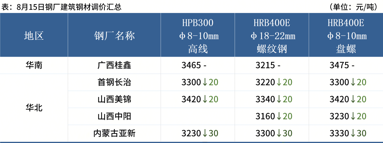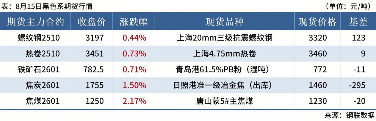 ◎ 8月15日,全國主港鐵礦石成交105.60萬噸,環(huán)比減18.9%;237家主流貿(mào)易商建筑鋼材成交10.51萬噸,環(huán)比增25.4%。