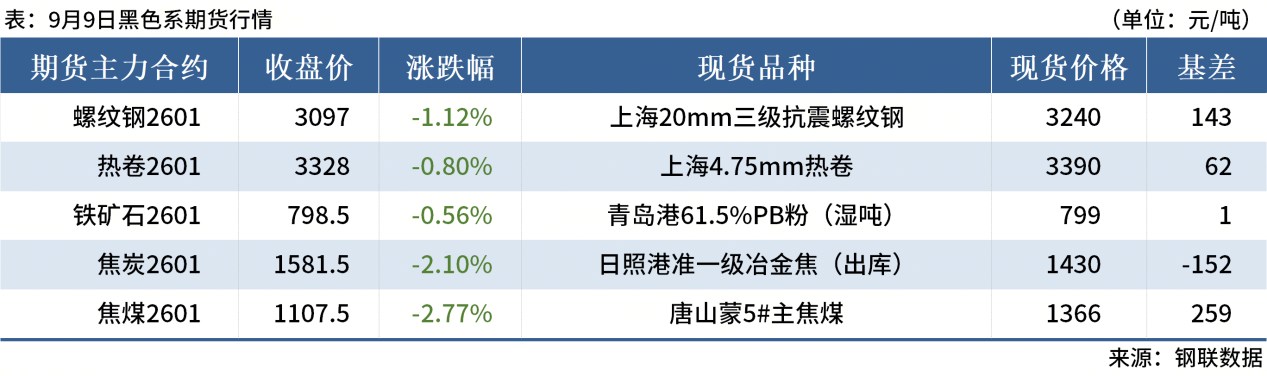 ◎9月9日,全國主港鐵礦石成交93.30萬噸,環(huán)比減18.2%;237家主流貿易商建筑鋼材成交10.14萬噸,環(huán)比減10%。