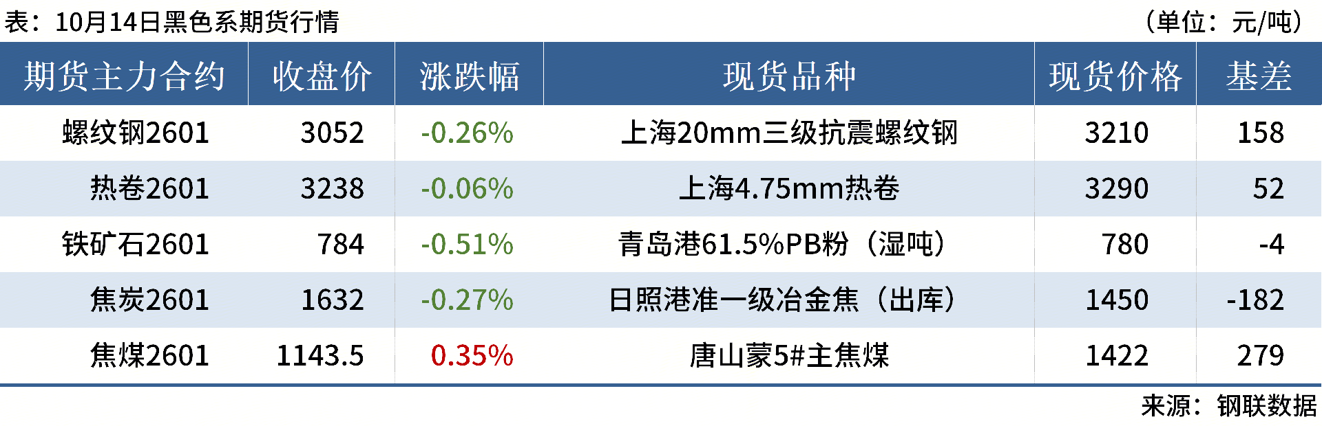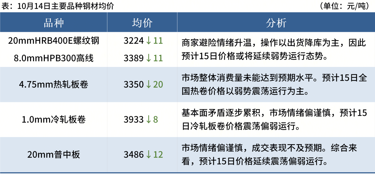◎ 10月14日,全國(guó)主港鐵礦石成交185.90萬(wàn)噸,環(huán)比增95.3%;237家主流貿(mào)易商建筑鋼材成交9.46萬(wàn)噸,環(huán)比減10.8%。